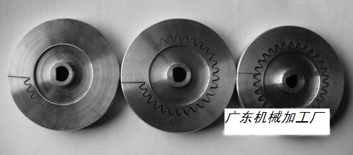 廣東機械加工廠在日常加工中,大厚度工件的切割比較困難,因為受放電加工蝕除條件的制約,工件厚到一定程度,沒有足夠的冷卻液進入工件,間隙內電蝕產物無法正常排除,加工很不穩定,直至有電流無放電的短路發生,在切割加工鋁件時這種現象更易發生。通常情況下線切割加工機床具有短路保護功能,一旦出現短路,機床工作臺即刻停止移動,保持原位不動等待處理。然而在加工鋁件時,由于鋁材輕、質軟及排屑困難等,有時短路后放電點由加工區轉移至饋電塊處,造成饋電塊與鉬絲有火花放電,因此盡管工件和電極絲之間處于短路狀態,但機床放電狀態正常,因此機床不會因工件與鉬絲間短路而實現短路保護,此時機床仍按正常程序切割加工,加工處因不放電故工件不能加工出正常形狀和尺寸,僅靠鉬絲在較軟的鋁質工件上拉出溝槽,造成切割軌跡畸變,導致工件報廢。如圖4所示加工齒輪時,前兩個件加工均出現了切割軌跡畸變而工件報廢的情況